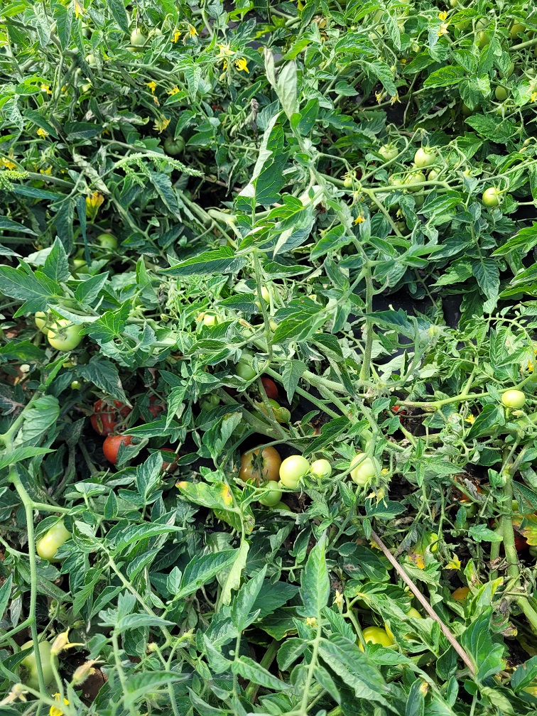 Auch im Freiland wachsen übrigens Tomaten, die wir uns selbst zum Verarbeiten ernten können. Wir sagen euch Bescheid, wenn viele davon reif sind. Aktuell sehen die so aus:
